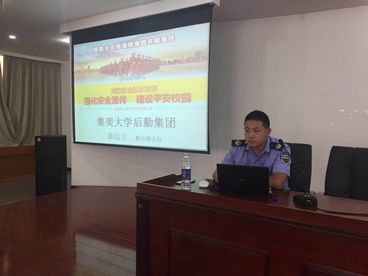 11月10日下午,后勤集团在航海学院万邦楼三楼会议室开展“强化安全宣传 建设平安校园”为主题的“119”消防安全宣传教育活动,安居防火技术股份有限公司教员部姜达立主任,以详实的资料、众多真实、生动的案例,向大家宣讲了许多实用的消防安全技能、知识,提高了职工的消防意识,初步掌握消防知识,增强突发火灾应急反应和自救互救能力。为后勤集团消防应急工作及时、高效、有序进行,维护校园稳定安全打下了良好的基础。