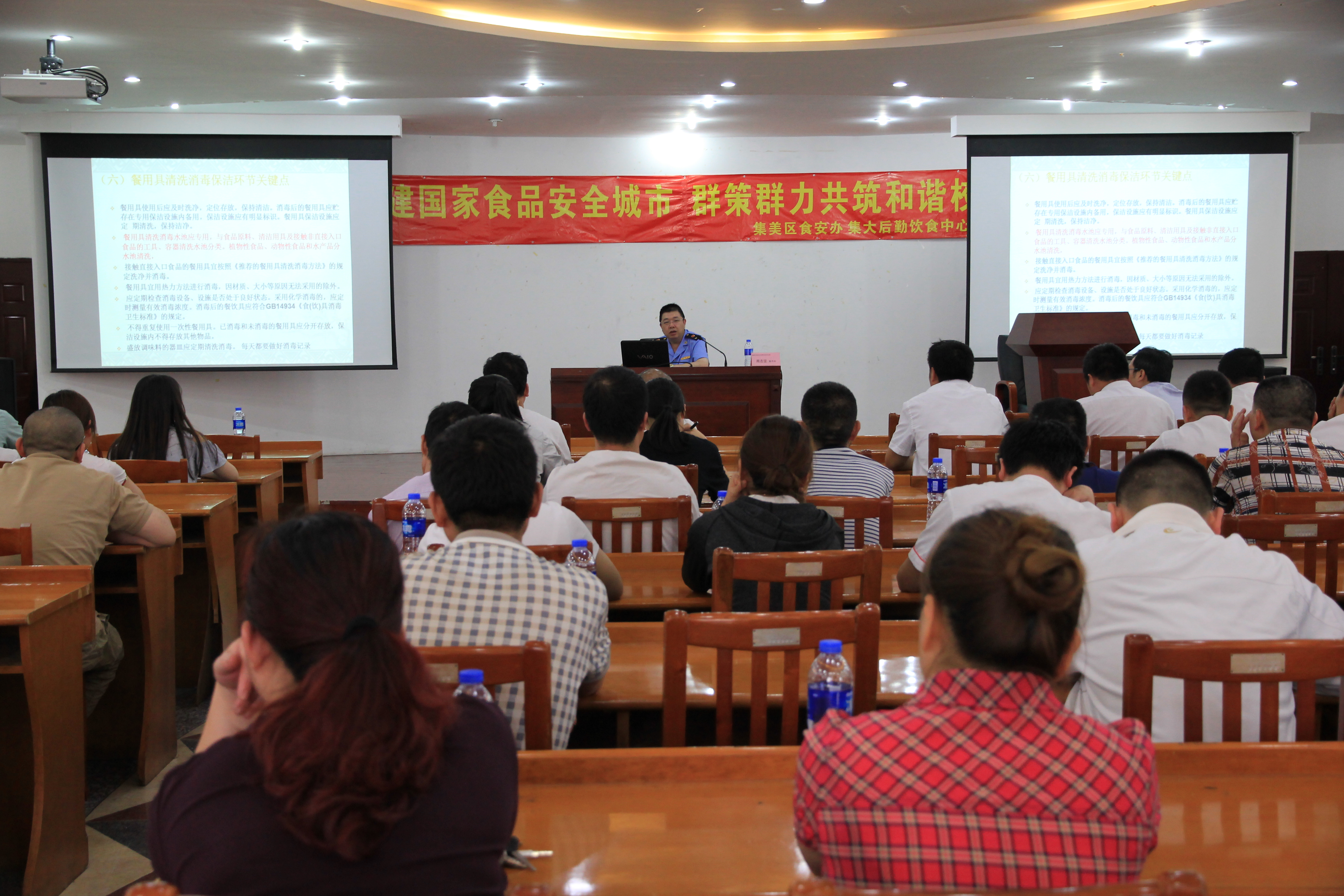 “民以食为天,食以安为先”,由集美区食安办、后勤集团饮食服务中心联合主办的“餐饮服务操作规范及预防食物中毒”专题培训于5月10日下午在万邦楼三楼多功能报告厅举行,饮食中心各餐厅、部门管理骨干共计百余人参加此次培训。
