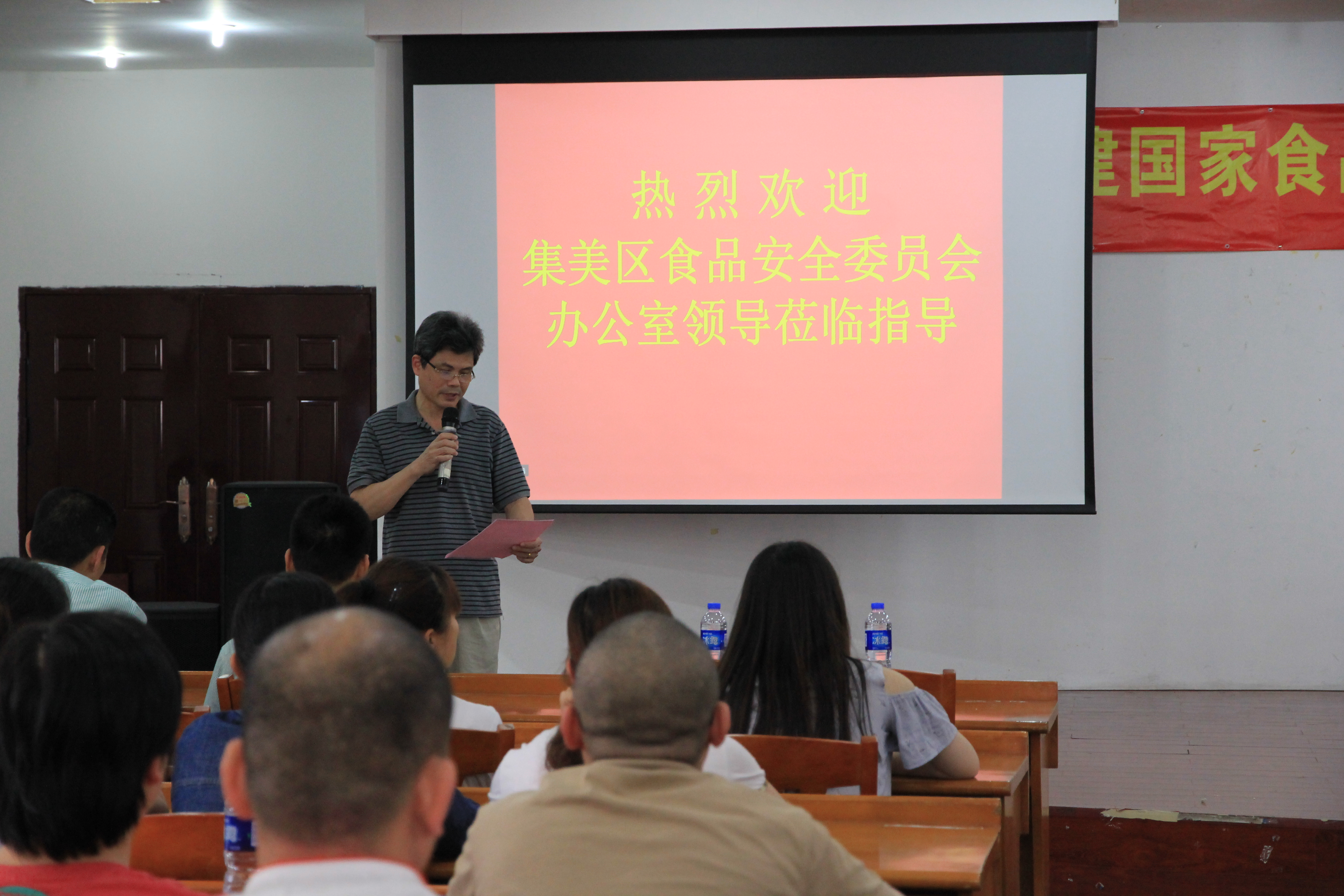 集美区食品安全委员会办公室周志坚秘书长、后勤集团副总经理李上平、资产与后勤管理处蔡水涛科长、医疗中心谢伟群医生出席本次培训会。会议由李上平副总主持,他首先就本次培训的举办背景、目的和意义进行了阐述,并要求全体参训骨干专注学习,切实转化为工作技能,提升食品安全管理能力。