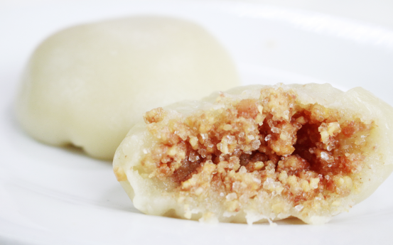 糯米糍:麻糍也是海苑餐厅的特色甜点之一。不同于厦门糍粑在实心糯米团表面洒上花生的做法,而是娴熟地把分量十足的花生包入糍粑,捏出浑圆的形状再上炉蒸熟。此外里面的花生也要费不少心思,炸花生时需控制好时间,炸过头的花生嚼起来嫌绵软。经油炸过后再放入专门的机器搅碎,加入白糖混合成甜美的里馅。咬开海苑的麻糍时,外皮的Q弹和花生的脆香结合得天衣无缝,化解了糯米天生的腻感,让人咬了一口后还想要第二口、第三口甚至再来一个。