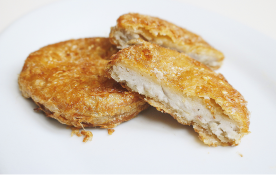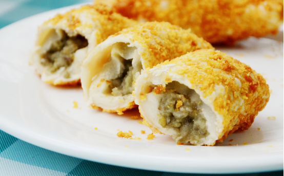 绿豆派:绿豆派是馨园餐厅这学期推出的新品,灵感来源于麦当劳,但不同于麦当劳的春卷皮,馨园阿姨选择更加厚实的面粉皮,吃起来不仅香脆还会略带松软,面粉加水、盐搅拌均匀,皮反复擀嫩,而里面的绿豆泥也有不少讲究:绿豆蒸熟去膜后加白糖放入机器磨碎,磨炼后继续在锅中翻炒,炒至干黏后用面粉皮包成四方状,外面裹一层鸡蛋,粘一层面包糠下去慢慢炸。炸好后呈诱人的金黄色,咬上一口,外皮的香脆实在与绿豆馅的松软甜蜜,无一不牢牢抓住女孩的心。除了绵密的绿豆馅,最近也陆续推出了香芋派、红豆派等不同口味。