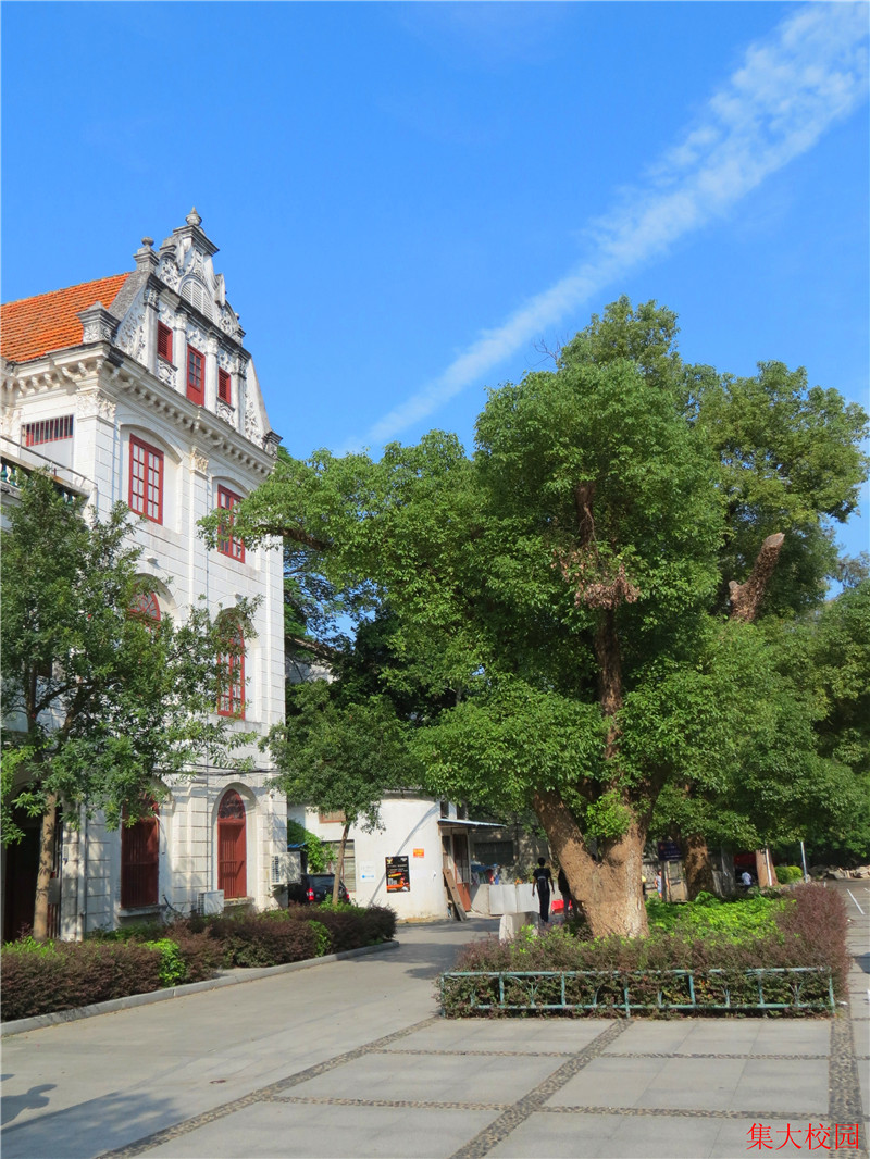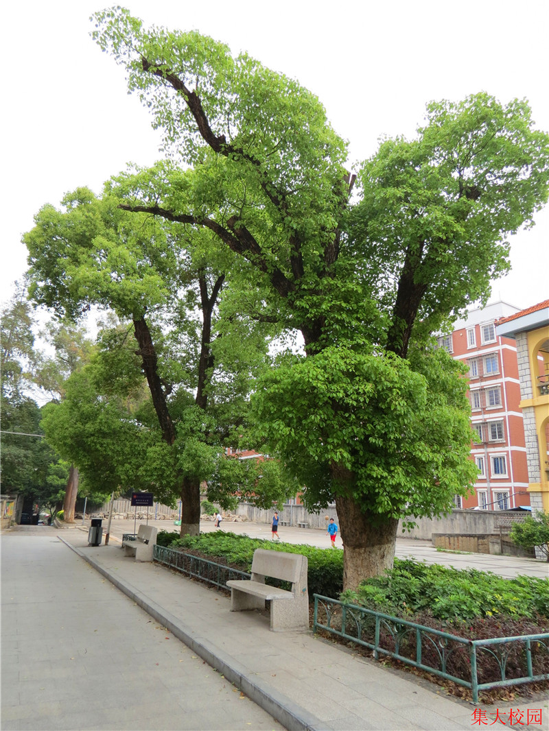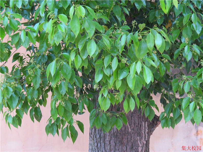 集大各校区都有樟树,科学馆门口就有三棵樟树,其中两棵较为高大,曾经长势不好,后经过修剪、精心养护,现又恢复勃勃生机。