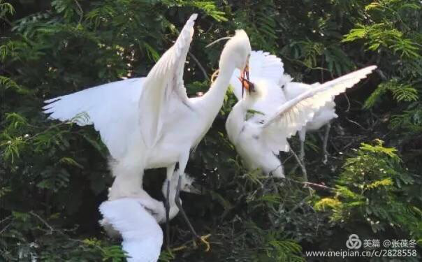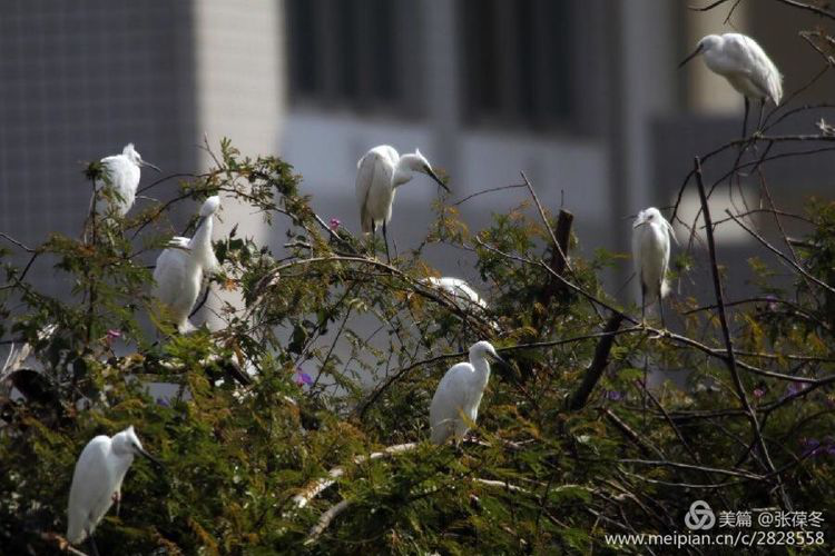每年的三月份可能是鹭的恋爱期,它们为争地筑巢,总会吵吵嚷嚷,争执不休,有时还会大打出手。等稍有安定,成双成对又相守相依,卿卿我我,尽显温柔。到了四月间,小宝宝出壳嗷嗷待哺,这便是爹妈们最忙碌的时候,它们不分早晚地外出觅食……这时的校园,随处可见匆匆飞来飞去的鹭,有白的白鹭,有褐的夜鹭,成为了校园里最最忙活的族群。到了课后,随着学生一群群地涌出教学楼,天上地下,一种流动着的风景充盈着校园,展现出勃勃生机!