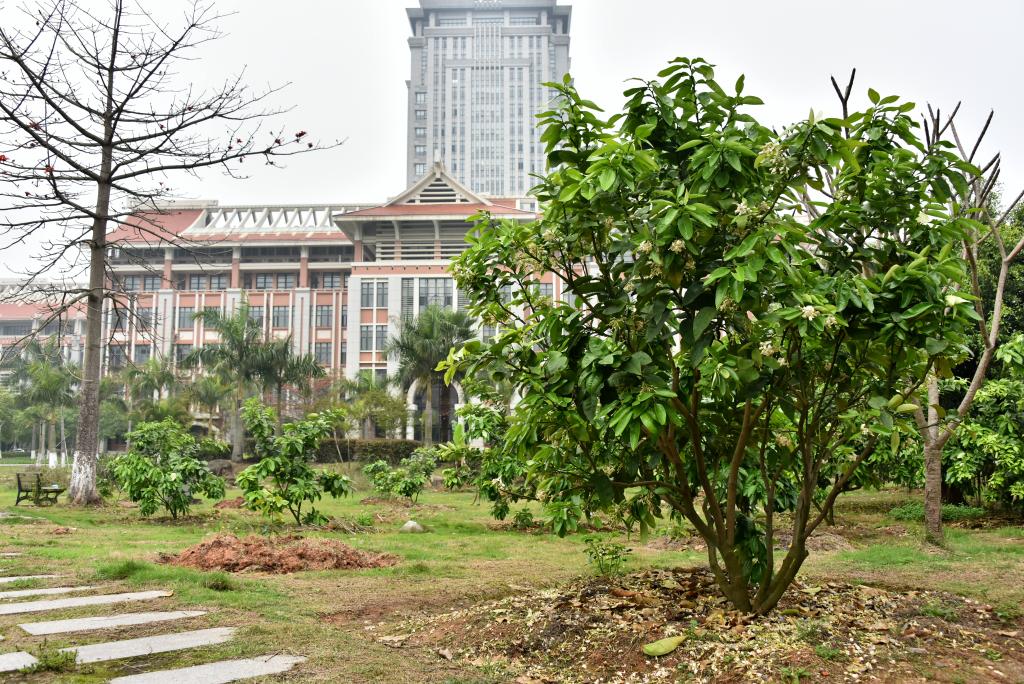 集大本无蜜柚树,2012年在新校区文学院南侧绿地实验性地种植了数十棵平和蜜柚,2014年以来已经能够开花欣赏,结果累累。2016年莫兰蒂台风影响,不少蜜柚树连腰折断,但不久又长出新芽。2017年3月,许多蜜柚又开花满树,香飘校园。诚毅学院也在体育馆、影剧院周边种植了一些。平和蜜柚开花极香,有些人把小树盆栽,虽只开花数朵,也能满室飘香。